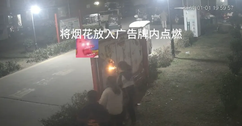 2025年1月1日,河南南阳一小区内,有孩子在燃放烟花时将小烟花放进路边广告牌内点燃,很快广告牌被熊熊烈火吞噬,孩子们见状试图用嘴把火吹灭,可为时已晚。所幸小区保安及时赶到,将火势扑灭,未造成人员伤亡。
