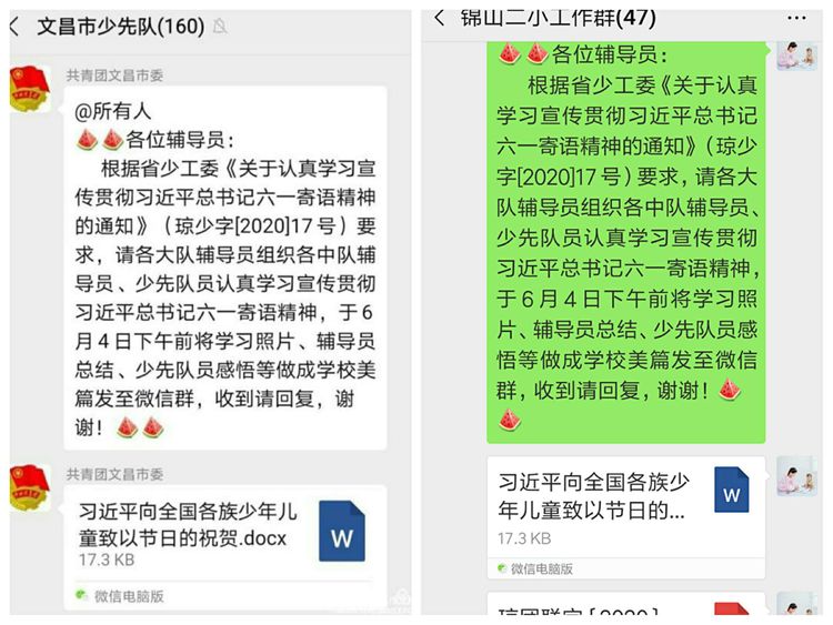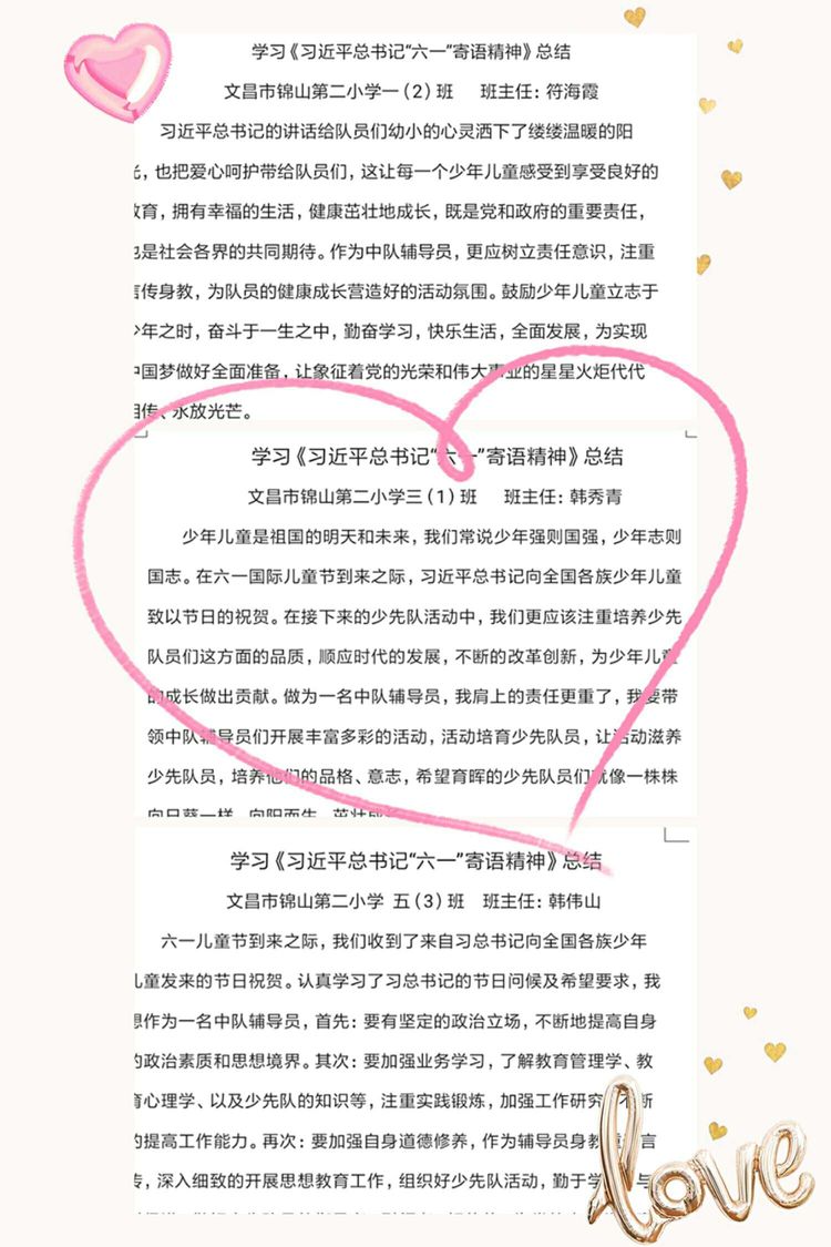 我校大队部根据市团委的通知要求,及时在学校工作群转发了共青团海南省委、海南省少工委《关于认真学习宣传贯彻习近平总书记六一寄语精神的通知》,并按照文件要求,组织全体教师44名和全体少先队员768名利用少先队活动课,围绕总书记寄语展开学习活动。