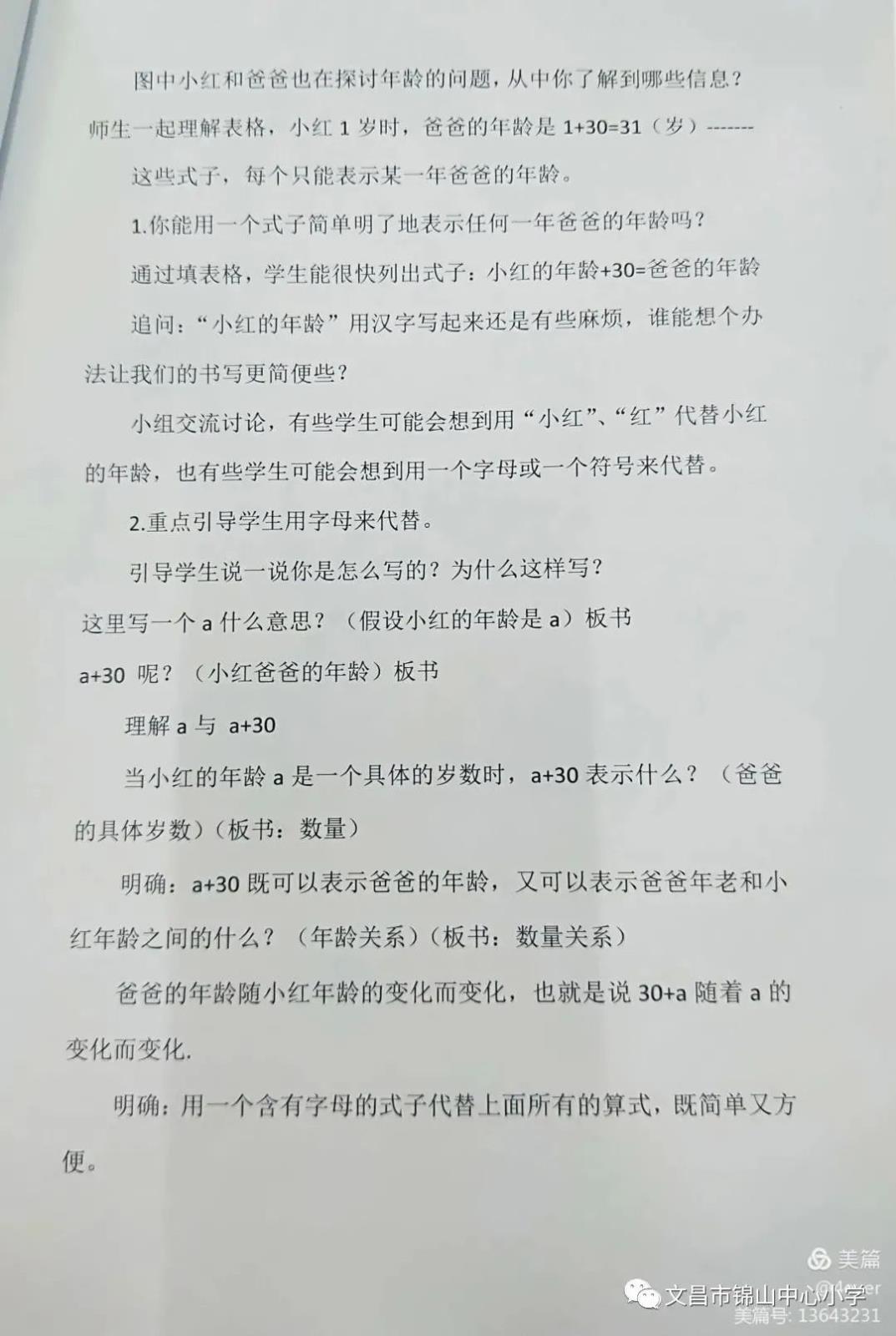 内容:人教版五年级上册《用字母表示数》,用字母表示数,对小学生来说比较抽象,学生初学用字母表示数,会因不习惯而感到困难,因为在学生的思维过程中,由具体的数和用运算符号组成的式子过渡到用字母和含有字母的式子表示数,是从个别上升到一般的抽象化过程。
