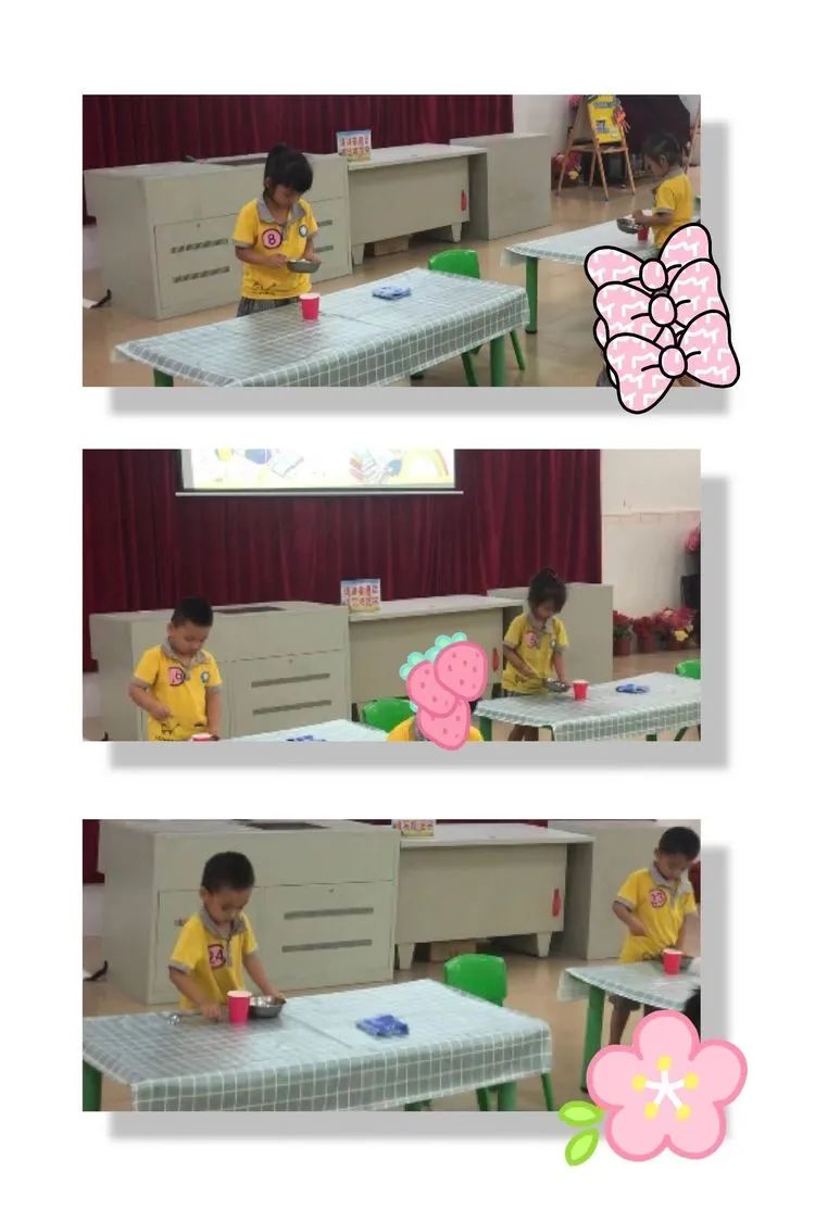小班:穿鞋子—叠方巾—舀豆子