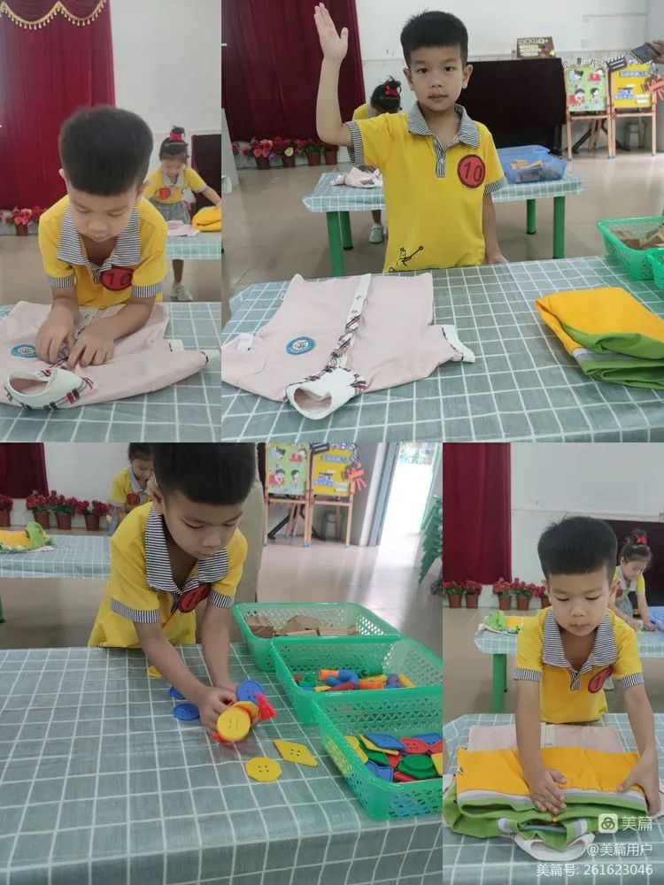 中班:收拾玩具—叠衣服—扣纽扣