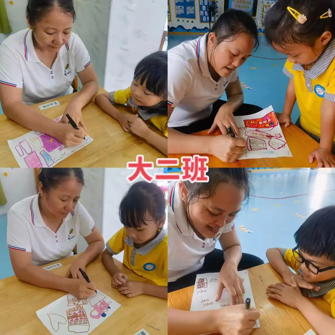 孩子们绘画购物趣事,老师一对一倾听并记录。